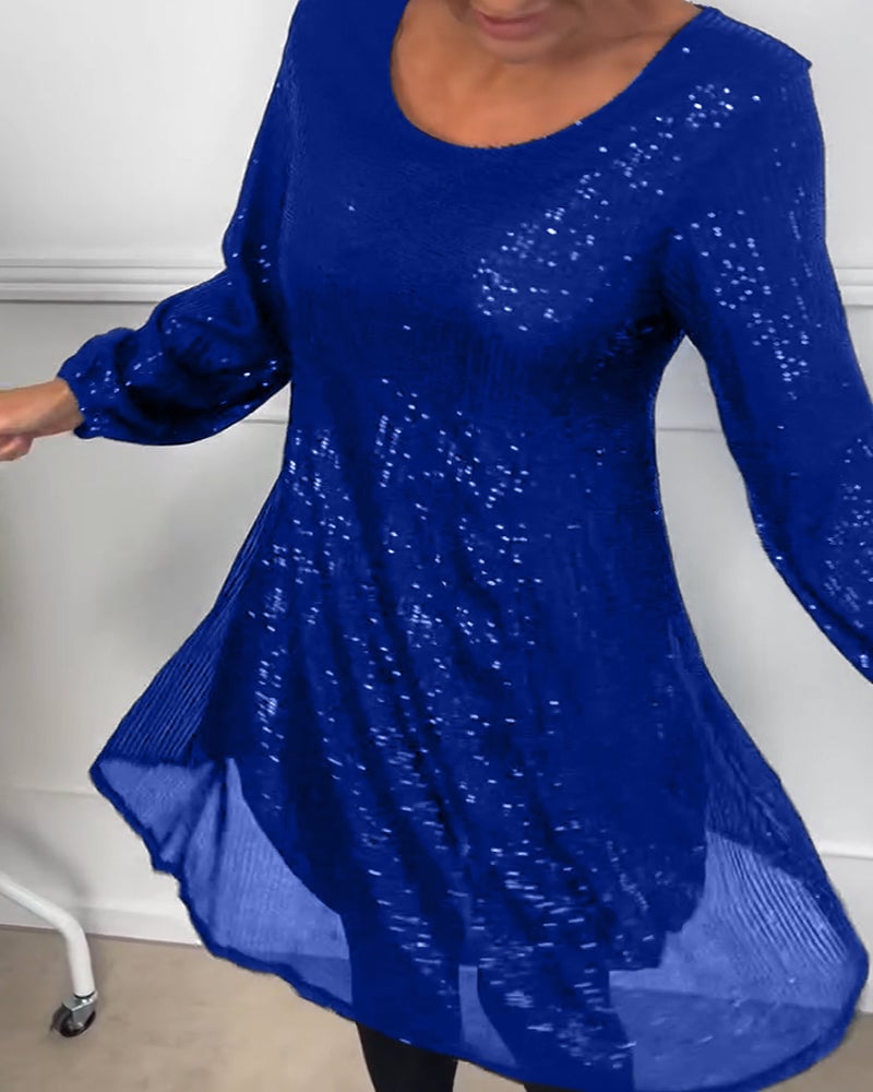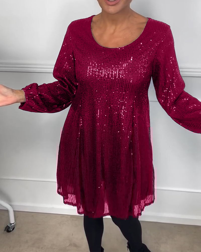 Sukienka elegancka z rękawami typu lampion i cekinami w kształcie litery A